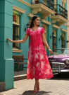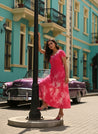 Women Fuchsia Rayon Tie & Dye Flared/A-Line Dress (W1281)