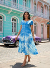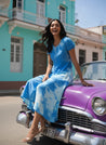 Women Sky Blue Tie and Dye A-Line Midi Dress (W1282)