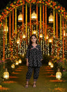Girls Black Printed Cotton Alia Kurta and Afghani Pants Set (K11074)