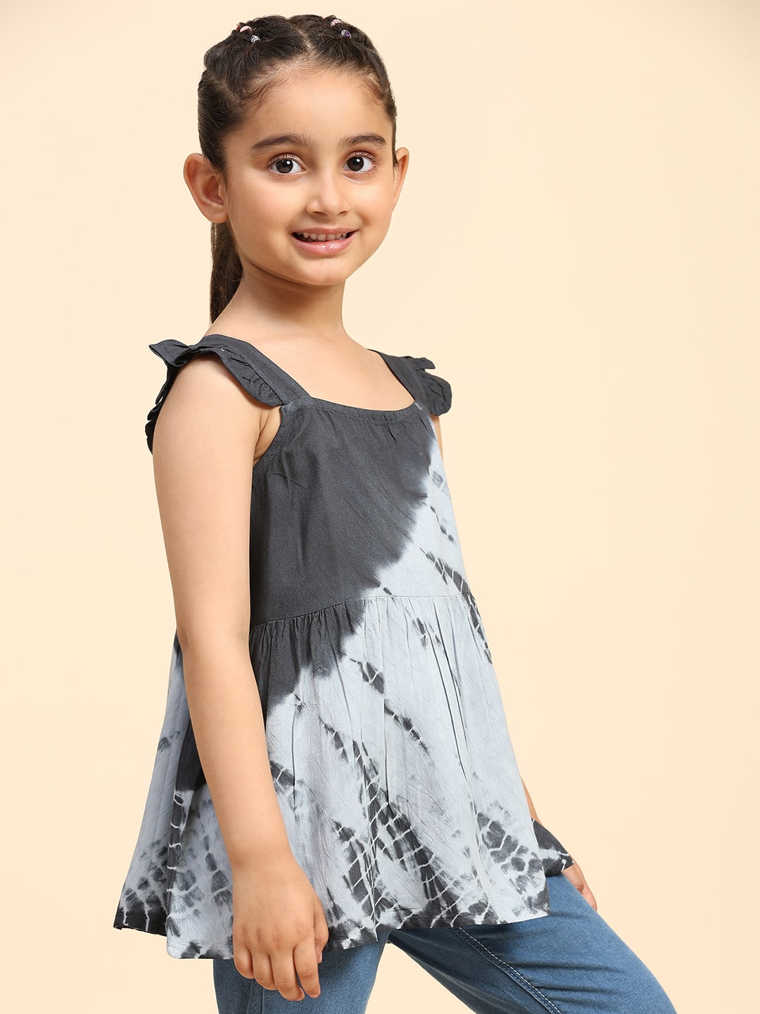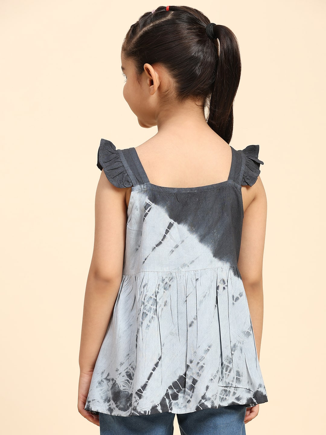 Hand Tie Dyed Frill Shoulder Top for Girls (K1006)