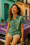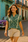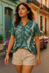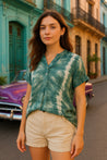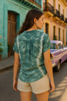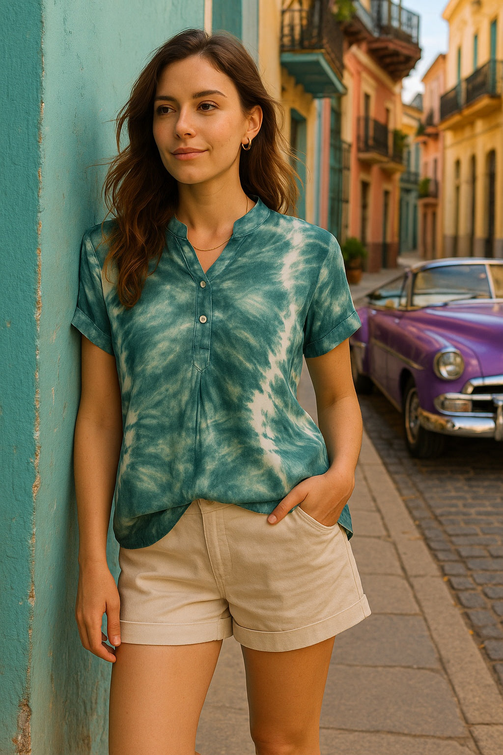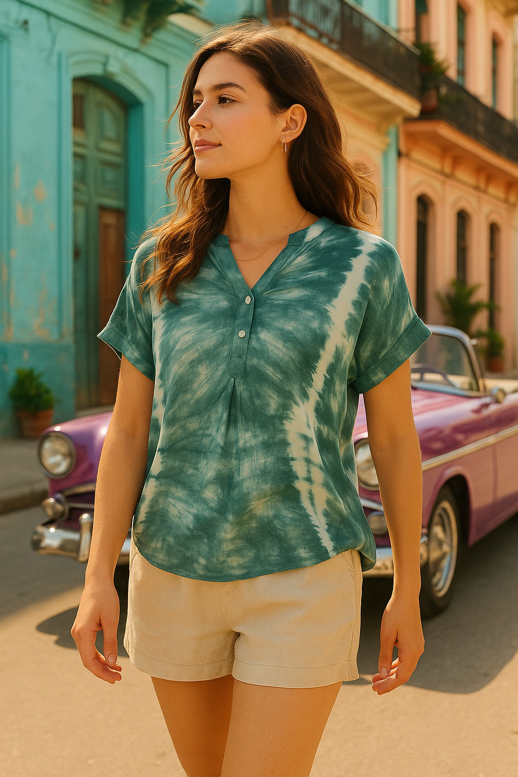 Women Hand Tie & Dyed Half Sleeves Rayon Slub Top (W1458)