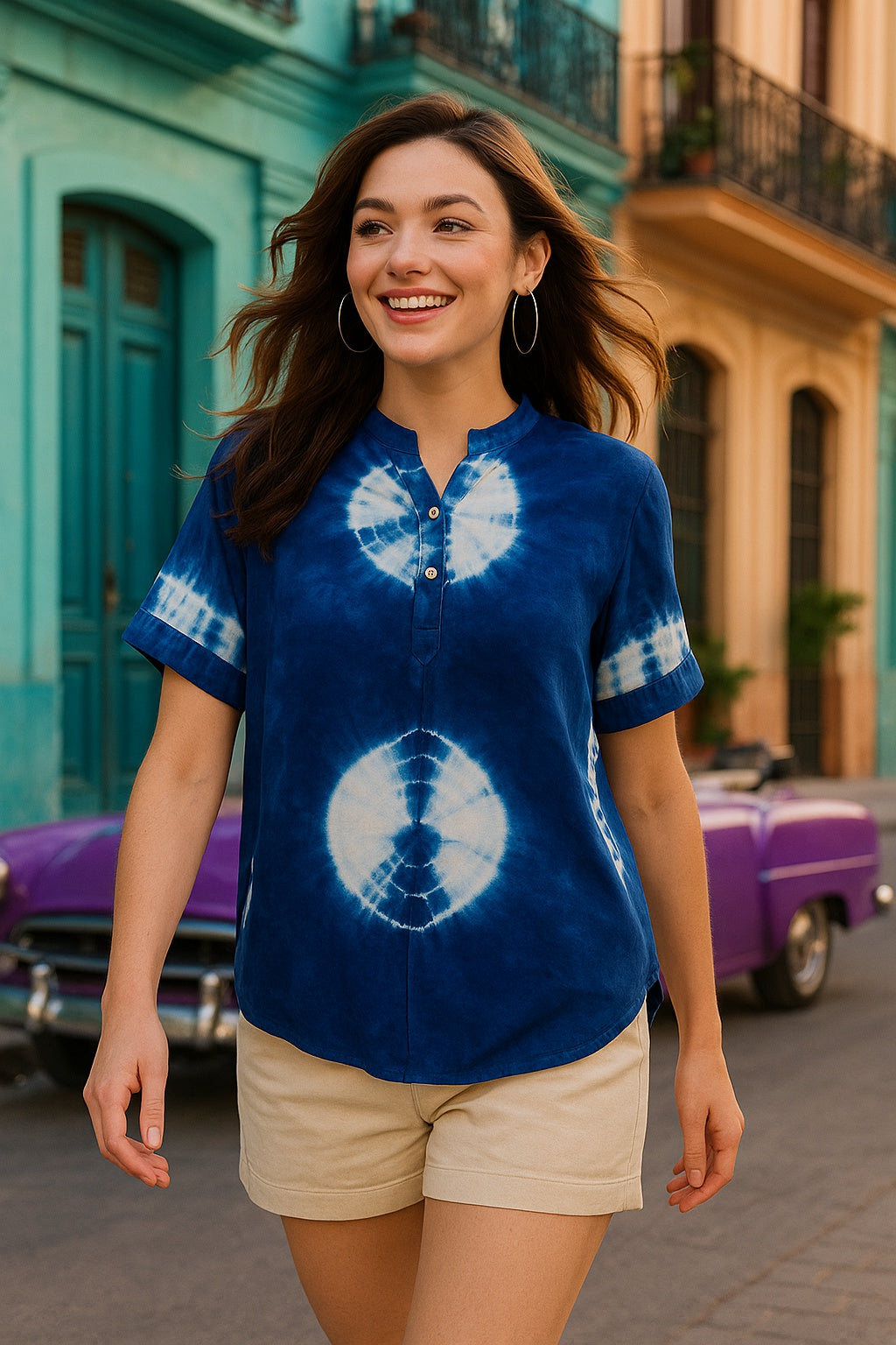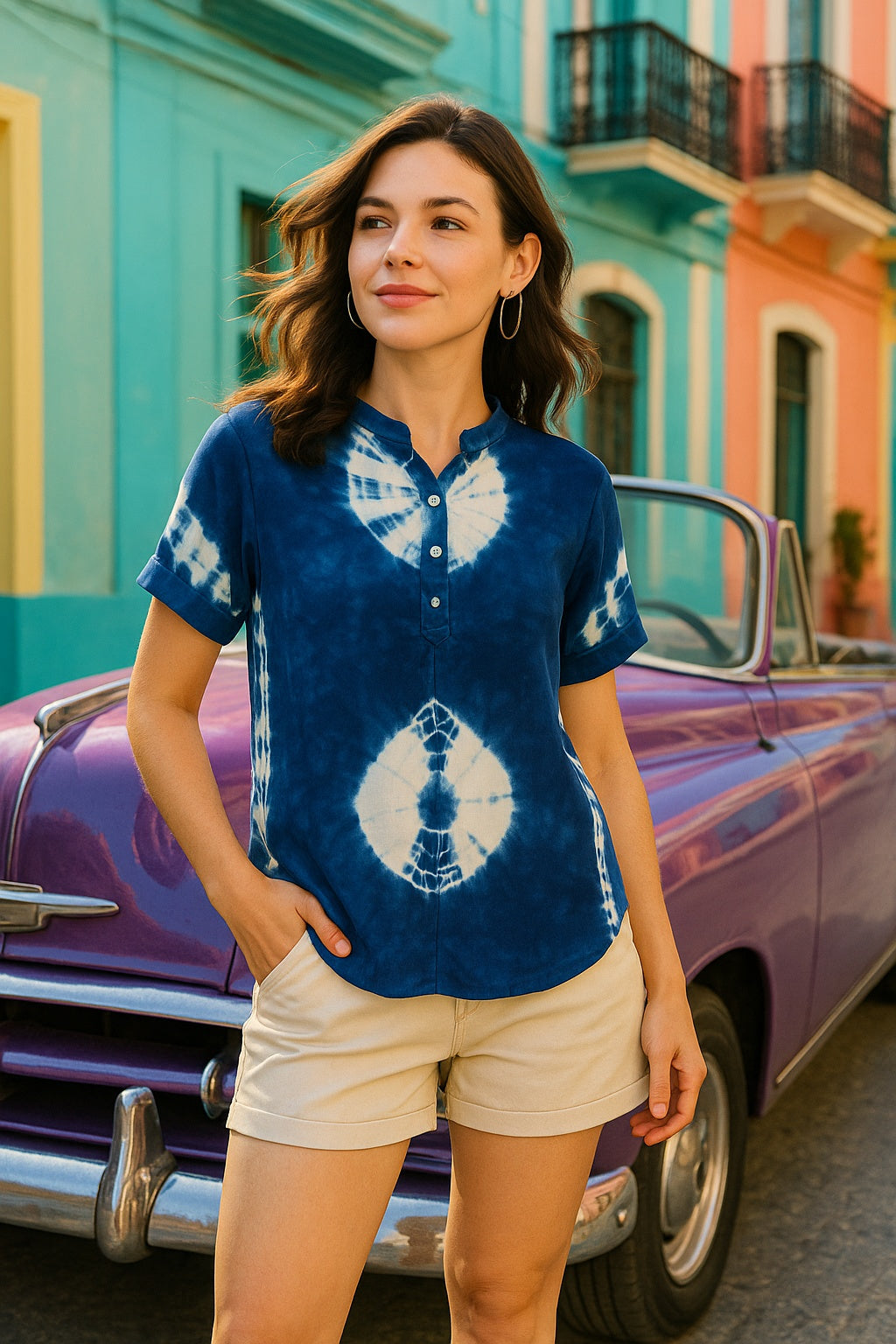 Tie Dyed Half Sleeves Rayon Slub Top (W1459)