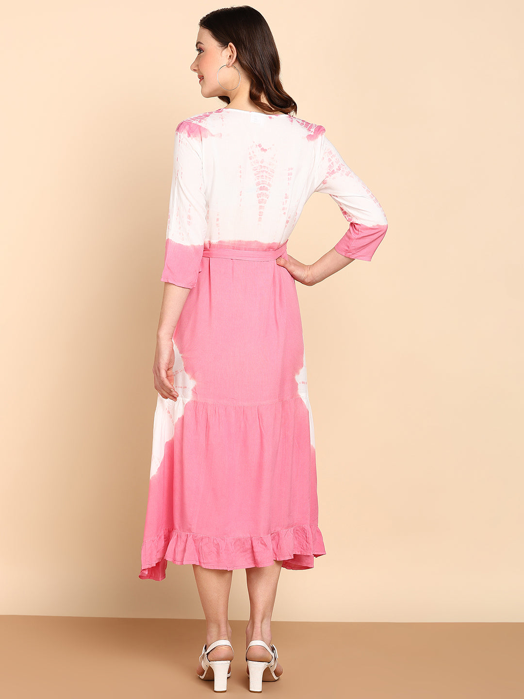 Women Rayon Staple Tie & Dye Flared/A-Line Dress (W1468)
