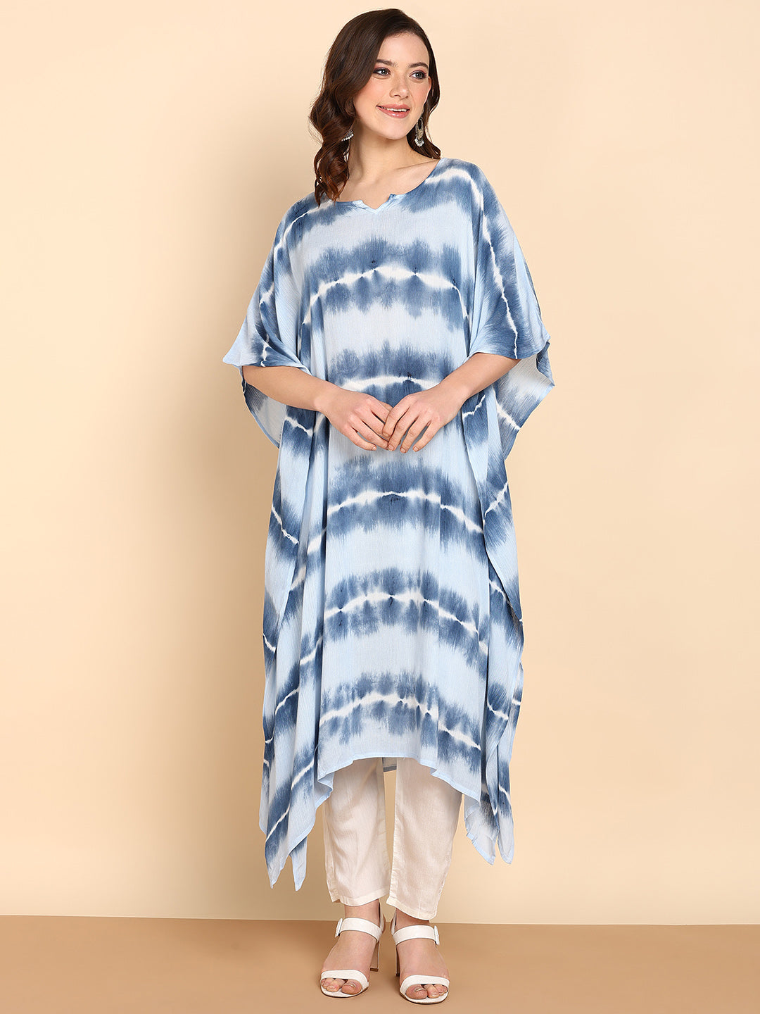 Women Tie & Dyed Rayon Crepe Kaftan Dress (W1429)