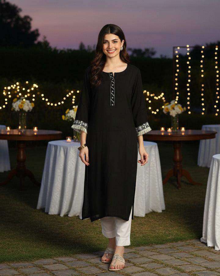 Women Casual Rayon Straight Embroidered Kurta (W1673)