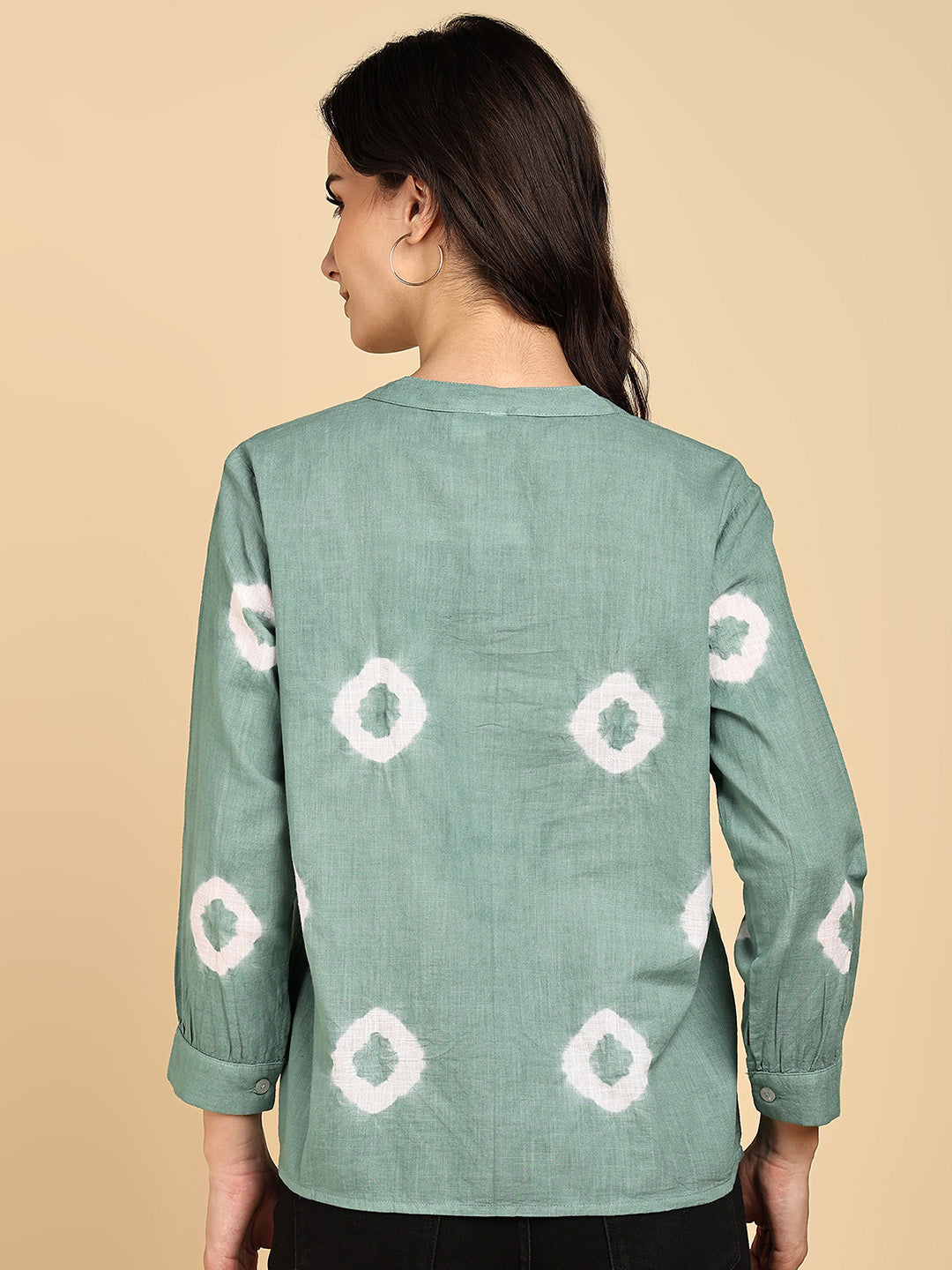 Women Casual Cotton Slub Tie & Dye Mandarin Full Sleeves Regular Fit Shirt (W1719)