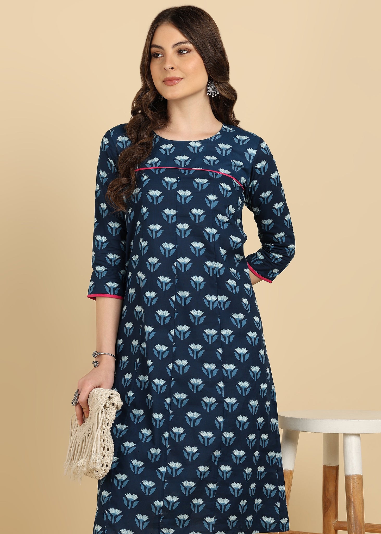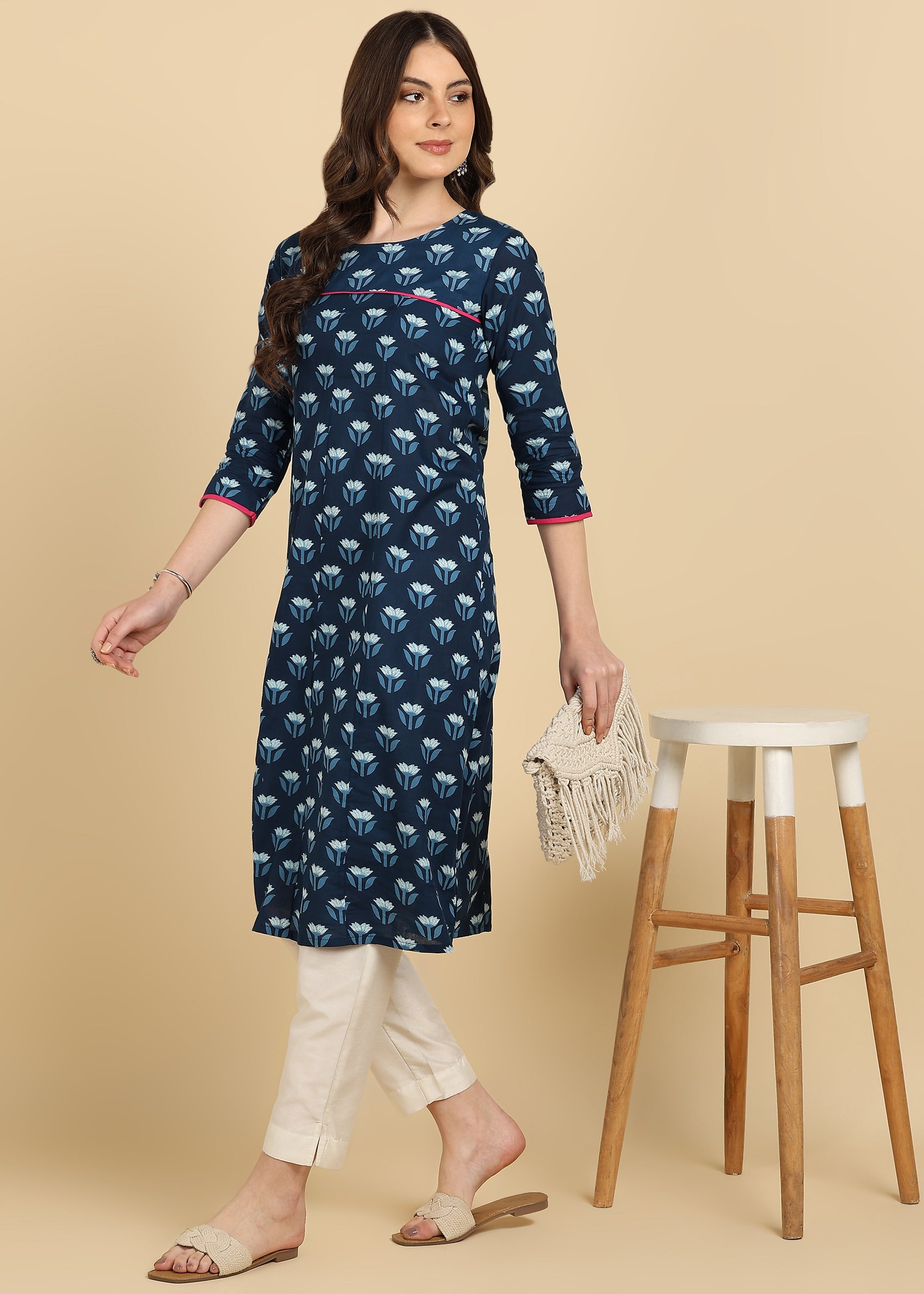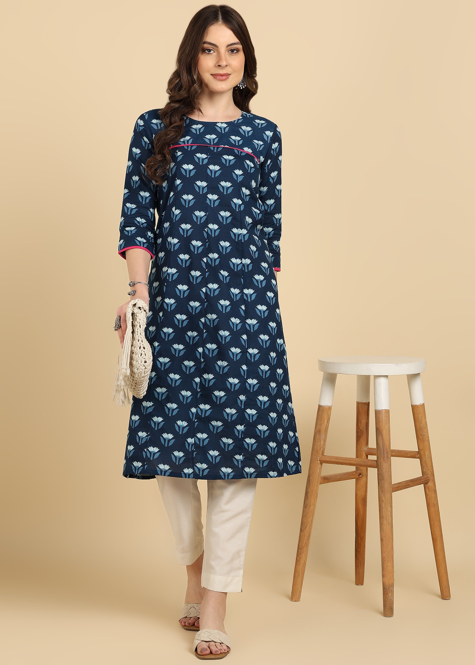 Introducing our latest design Kurta, thoughtfully designed to complement various tastes. This stylish piece is crafted for the modern woman, seamlessly blending traditional art with a contemporary flair. Adorned with beautiful eye-catching prints, it's a timeless and elegant choice. The kurta features a graceful neck, and a comfortable length, adding a touch of sophistication to your ensemble. Perfect for any occasion, this kurta is a versatile and stylish addition to your wardrobe. Pair it with your favorite bottoms and step out in confidence, as this ensemble effortlessly marries tradition with a modern twist.