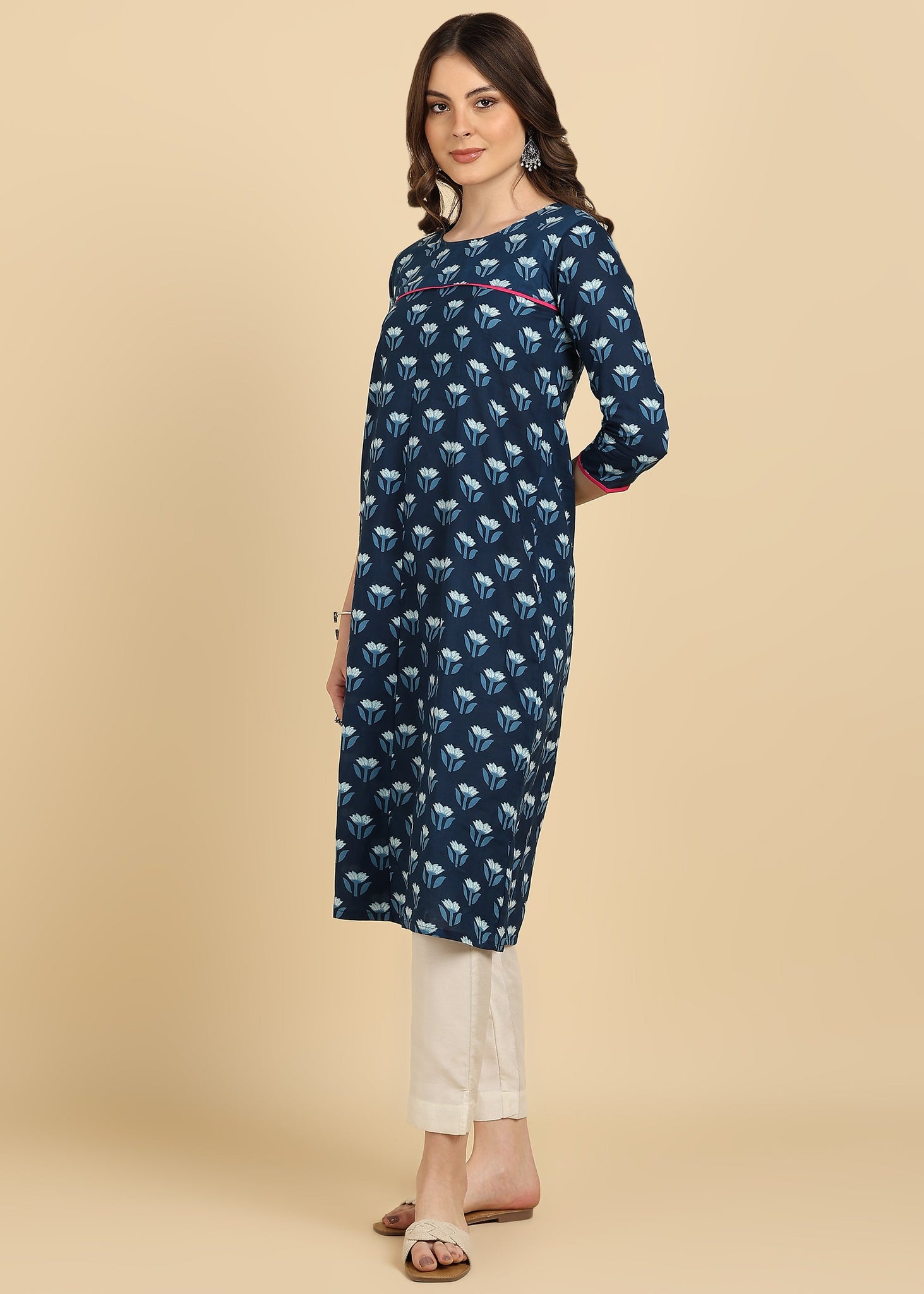 Women Cotton Floral Printed Straight Kurta (W1736)
