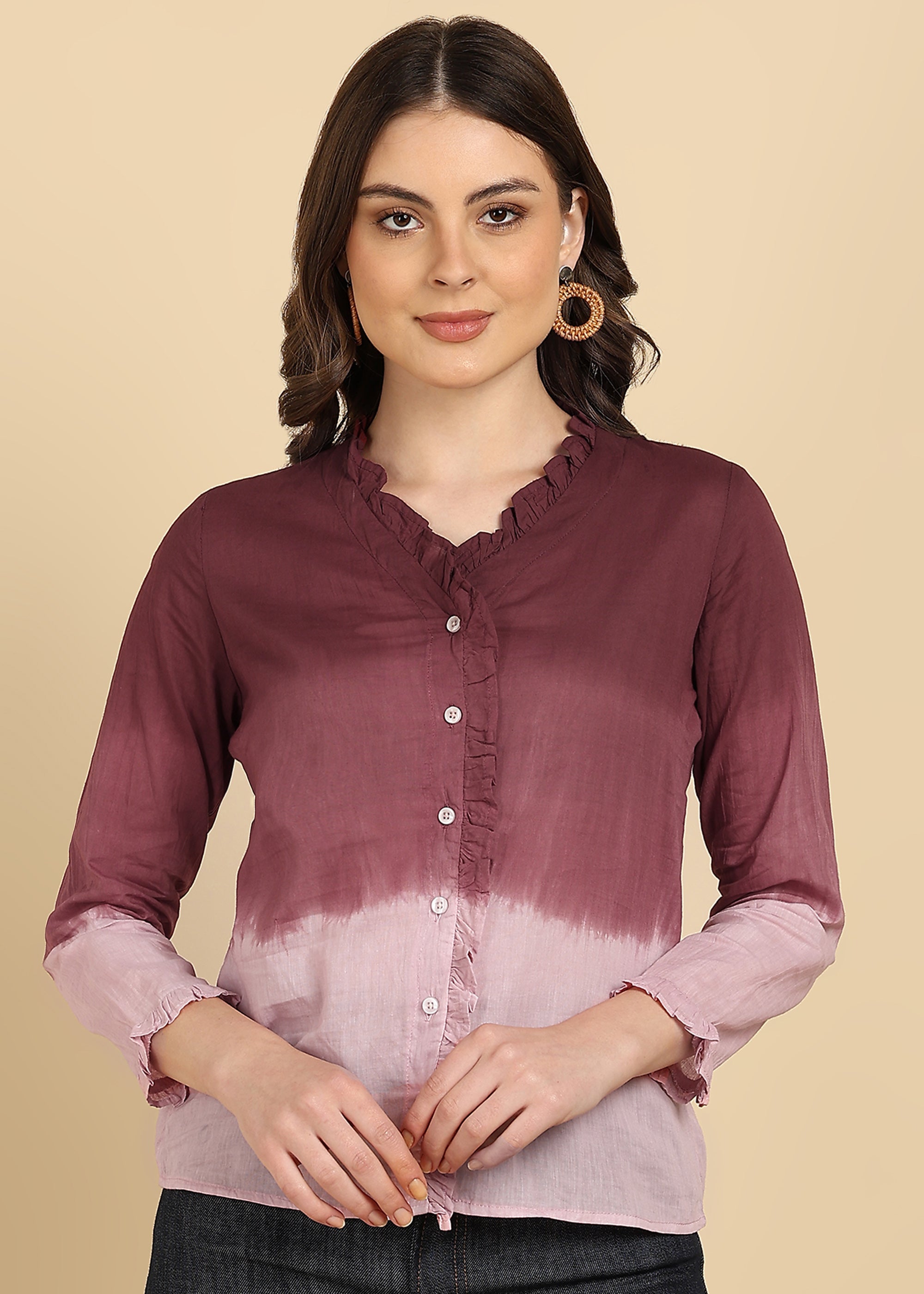 Women Cotton Tie & Dye Full Sleeve Casual Regular Fit Shirt (W1729)