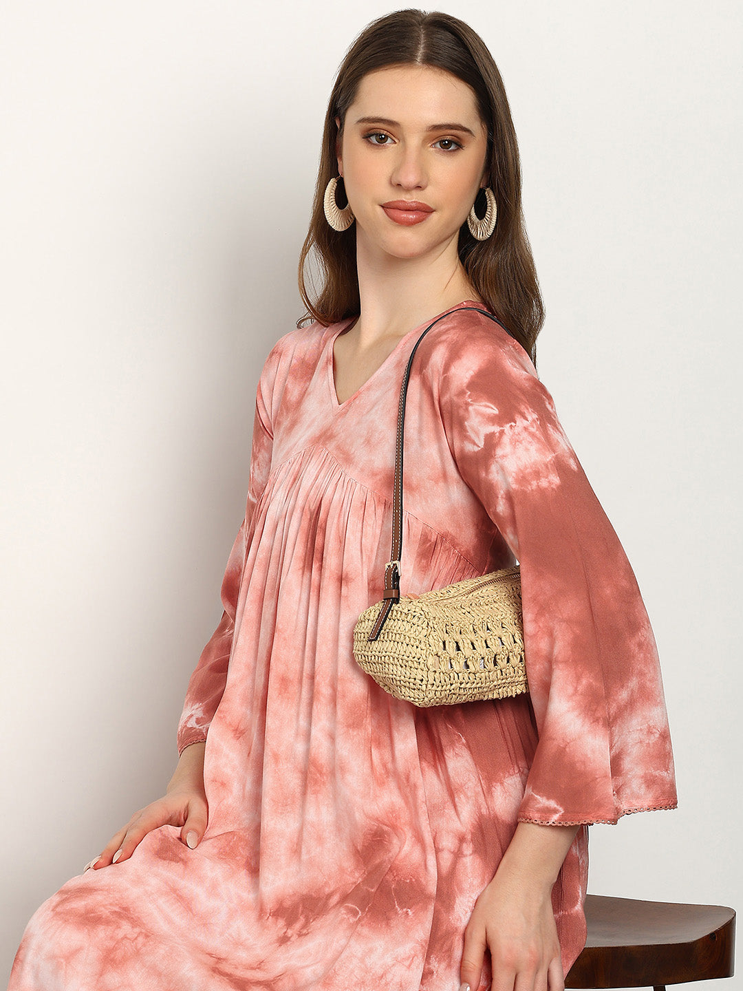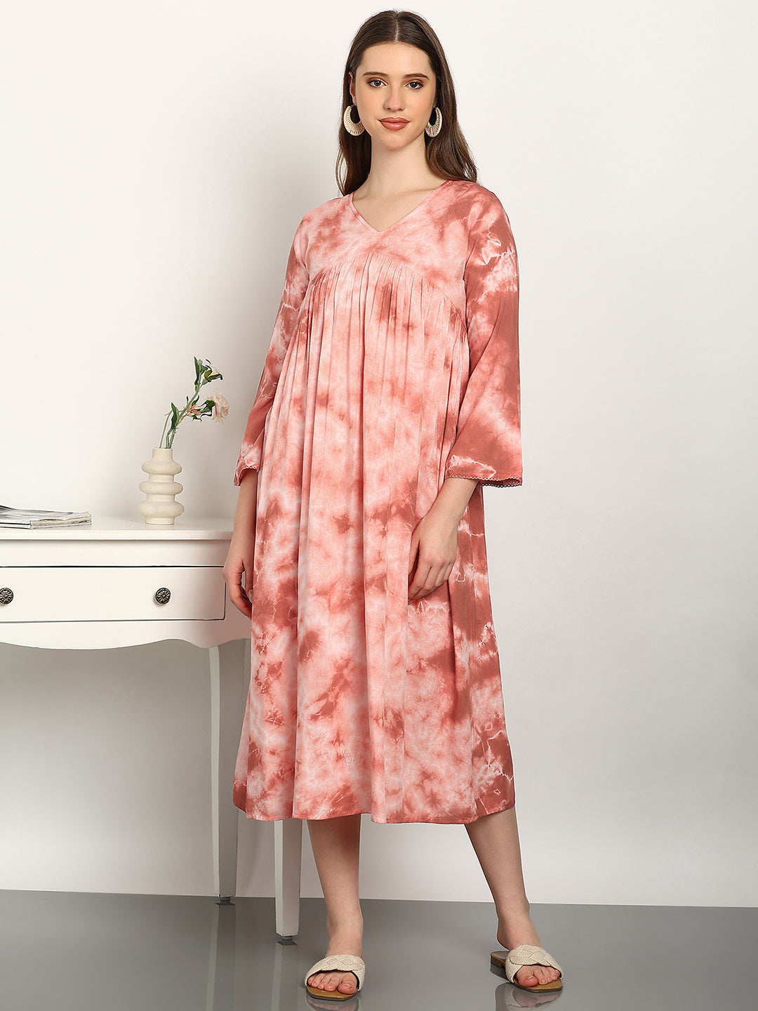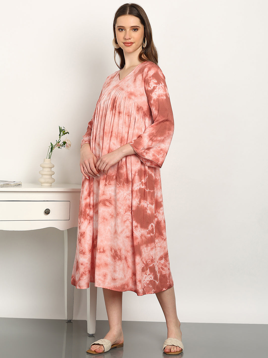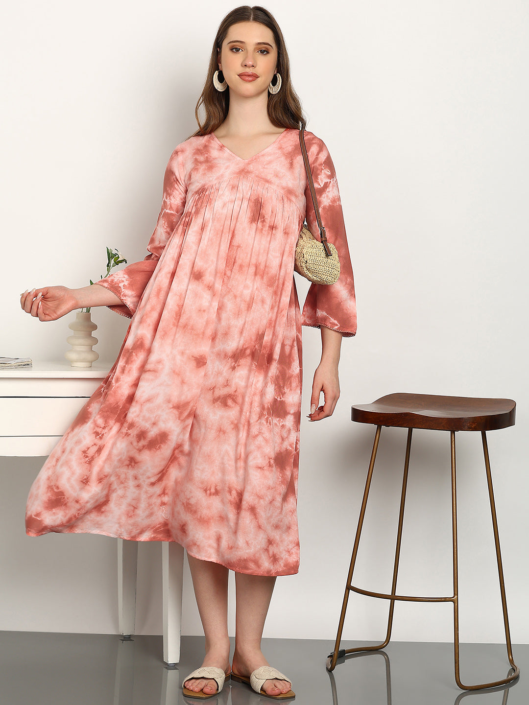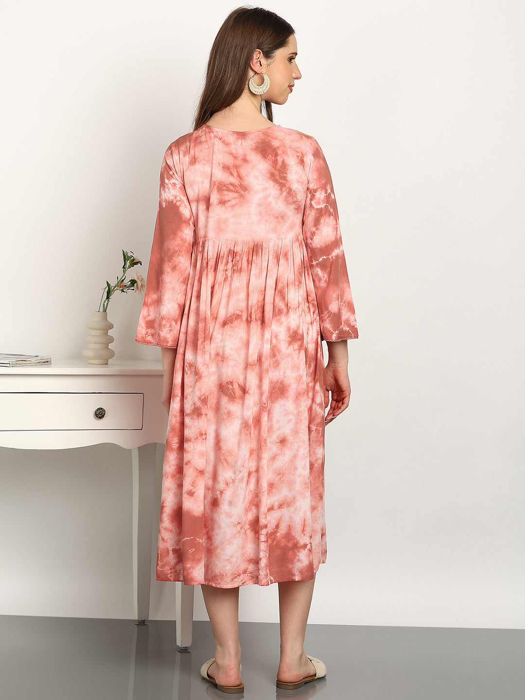 Women Hand Tie & Dye Rayon A-Line Dress (W1730)