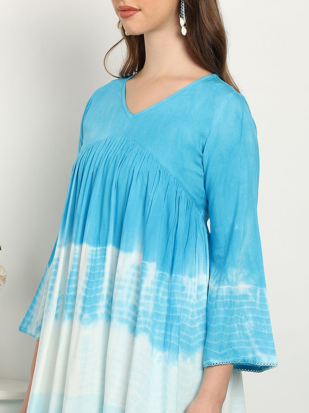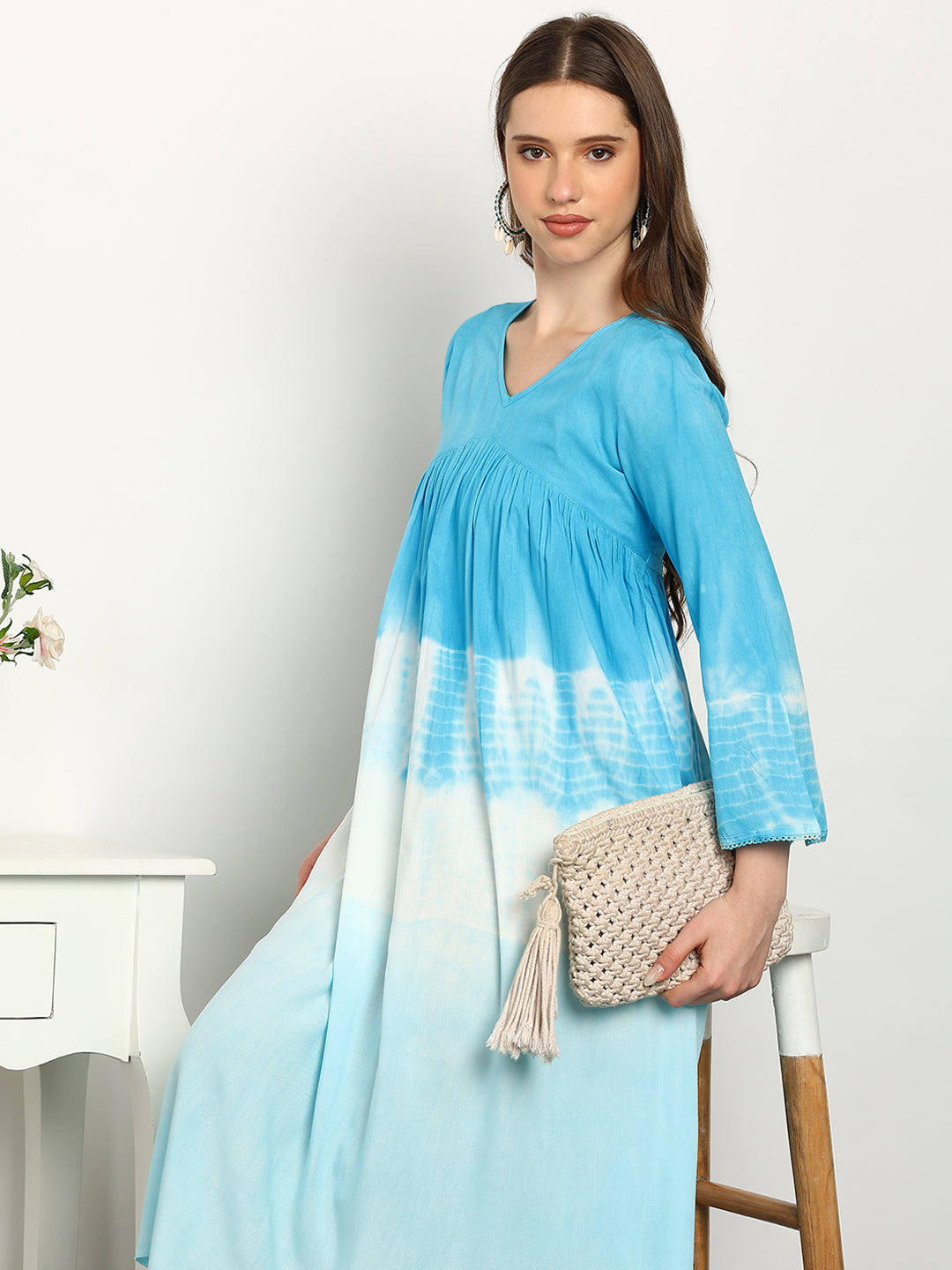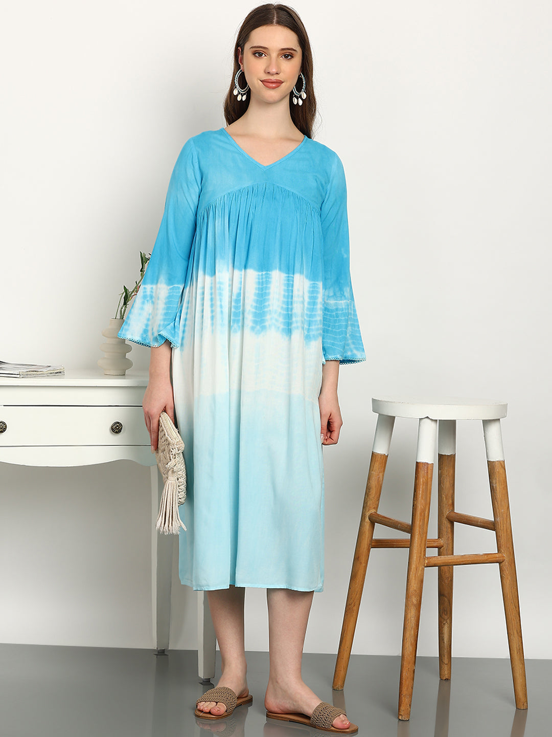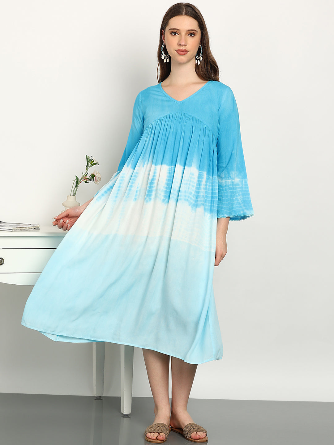 Women Hand Tie & Dye Rayon A-Line Dress (W1733)