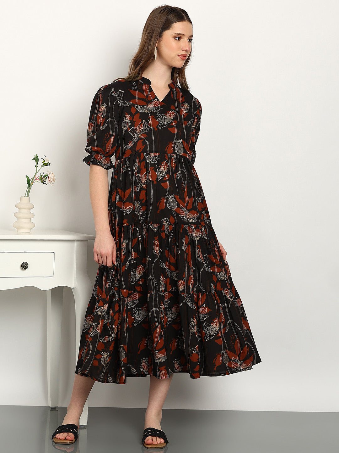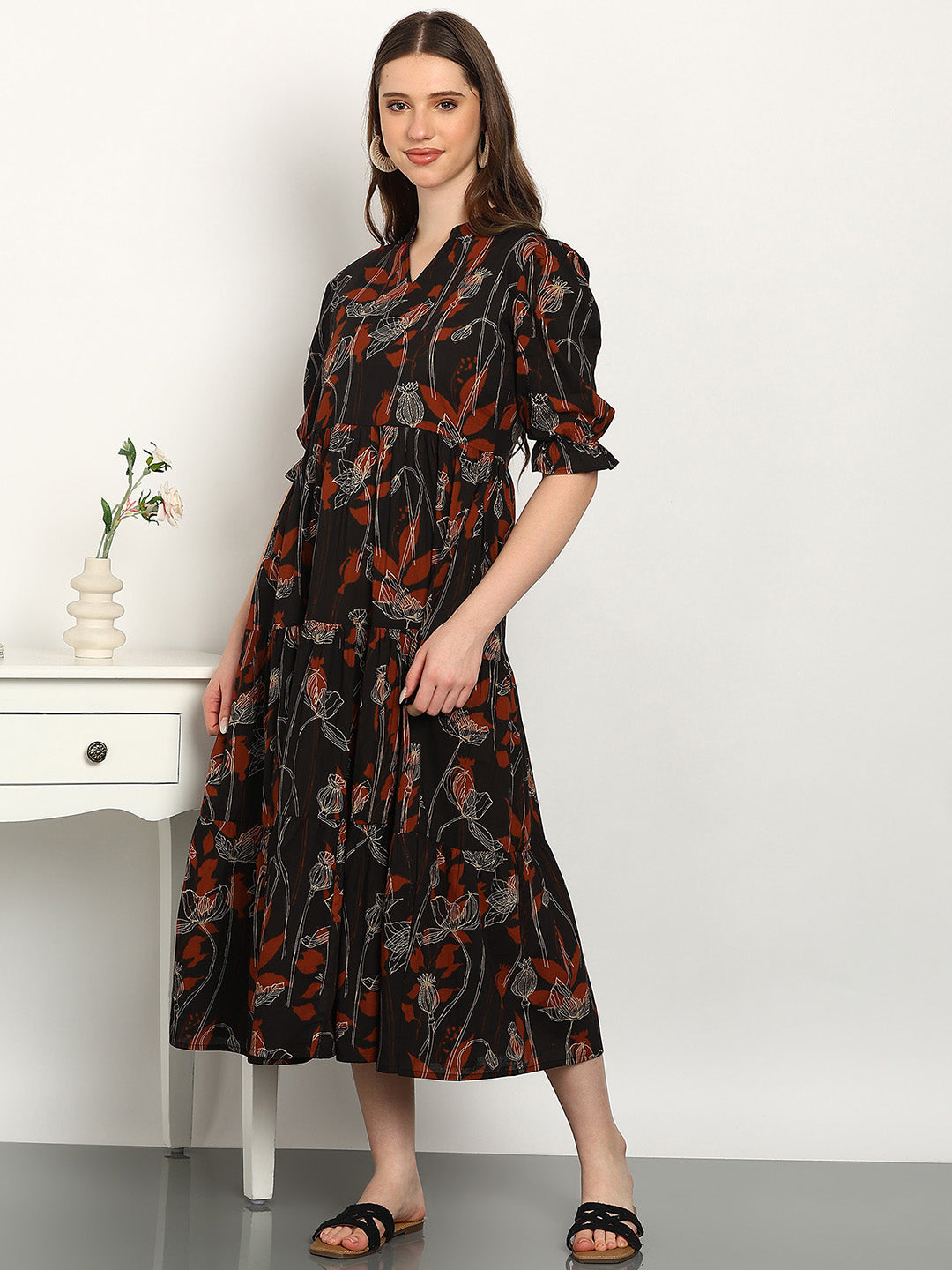 Elevate your everyday ethnic style with the Women A-Line Dress. Crafted from 100% soft fabric, this dress is soft, breathable, and perfect for all-day comfort. The elegant print adds a touch of sophistication, making it ideal for work, casual outings, or festive occasions.