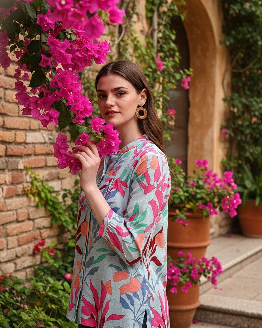 Due to the handcrafted nature of this garment, slight variations in shade, print, and embroidery may occur, making each piece unique.