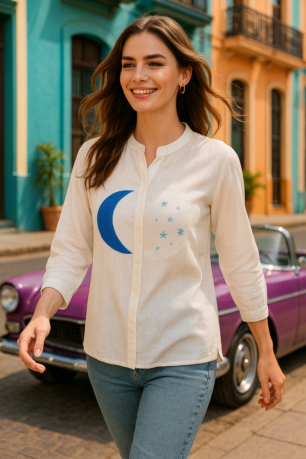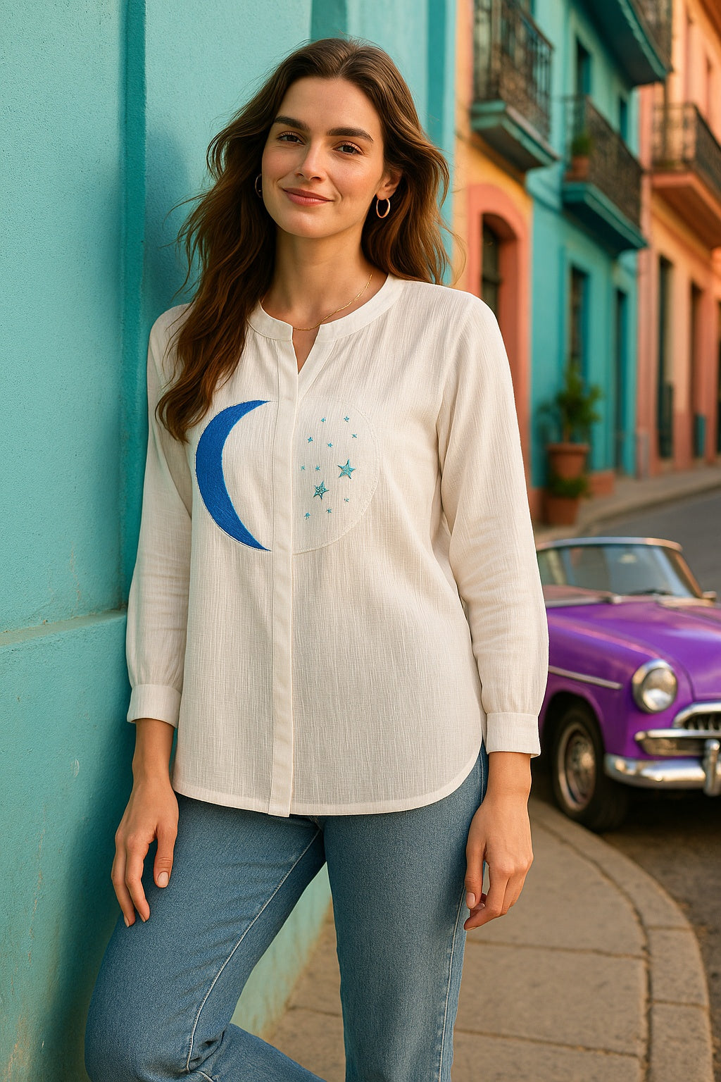 Women Casual White Embroidered Regular Fit Shirt (W1561)