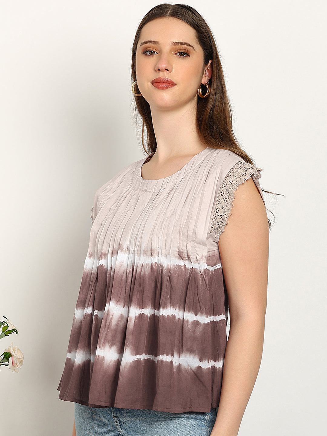 Women Casual Tie & Dye Cotton Flared Top (W1724)