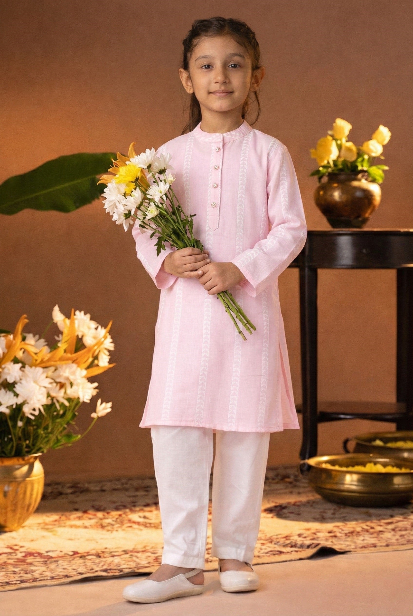 Classic Girls cotton kurta pyjama set, designed for comfort and style. This traditional outfit features a soft, breathable kurta paired with matching pyjama pants, perfect for festive occasions, family gatherings, or casual wear.