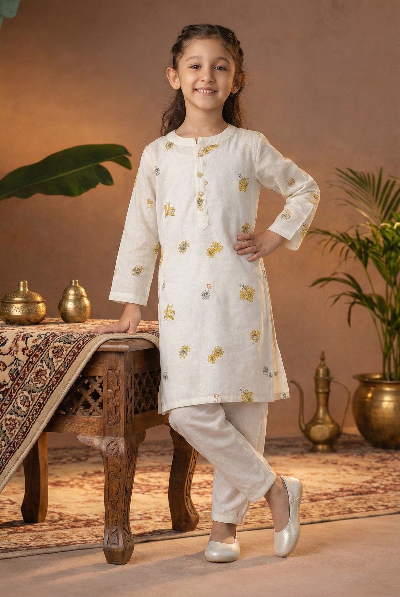 Classic Girls cotton kurta pyjama set, designed for comfort and style. This traditional outfit features a soft, breathable kurta paired with matching pyjama pants, perfect for festive occasions, family gatherings, or casual wear.