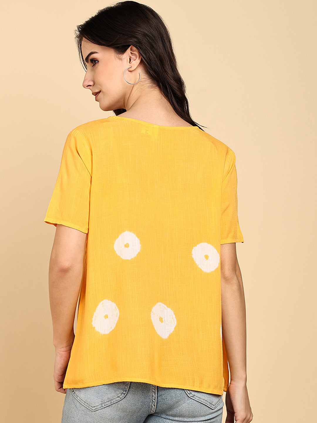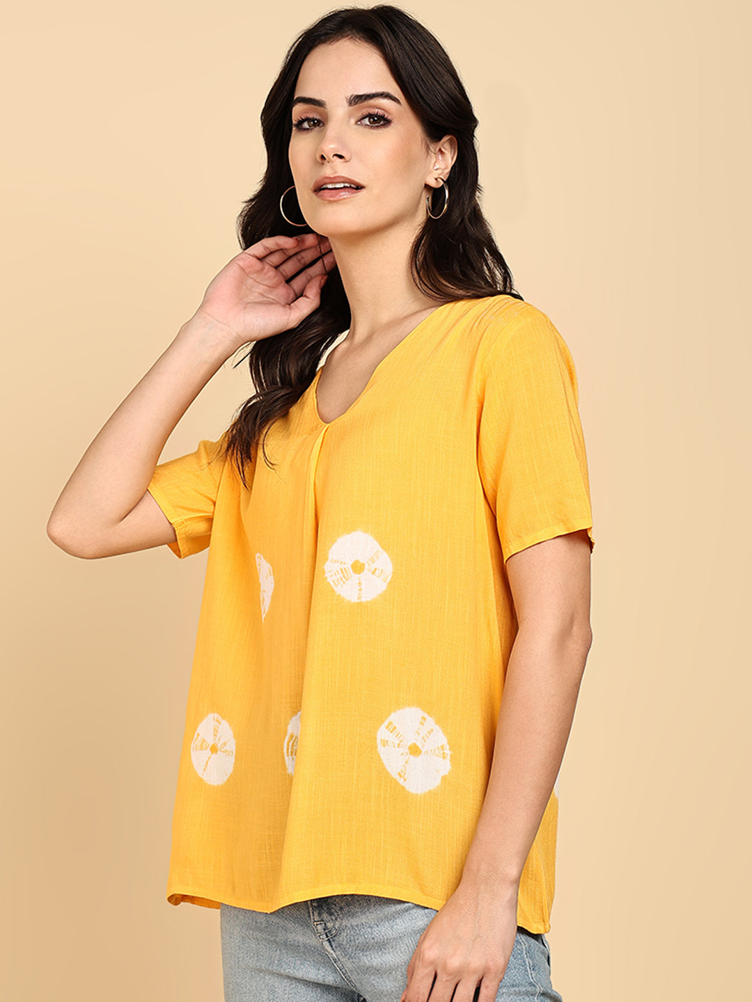 Women Casual Rayon Slub Tie & Dye V-Neck Short Sleeves Regular Fit Top (W1687)