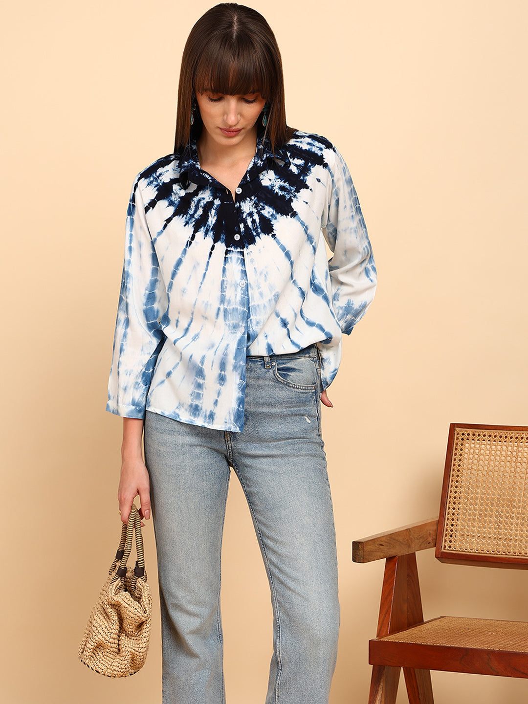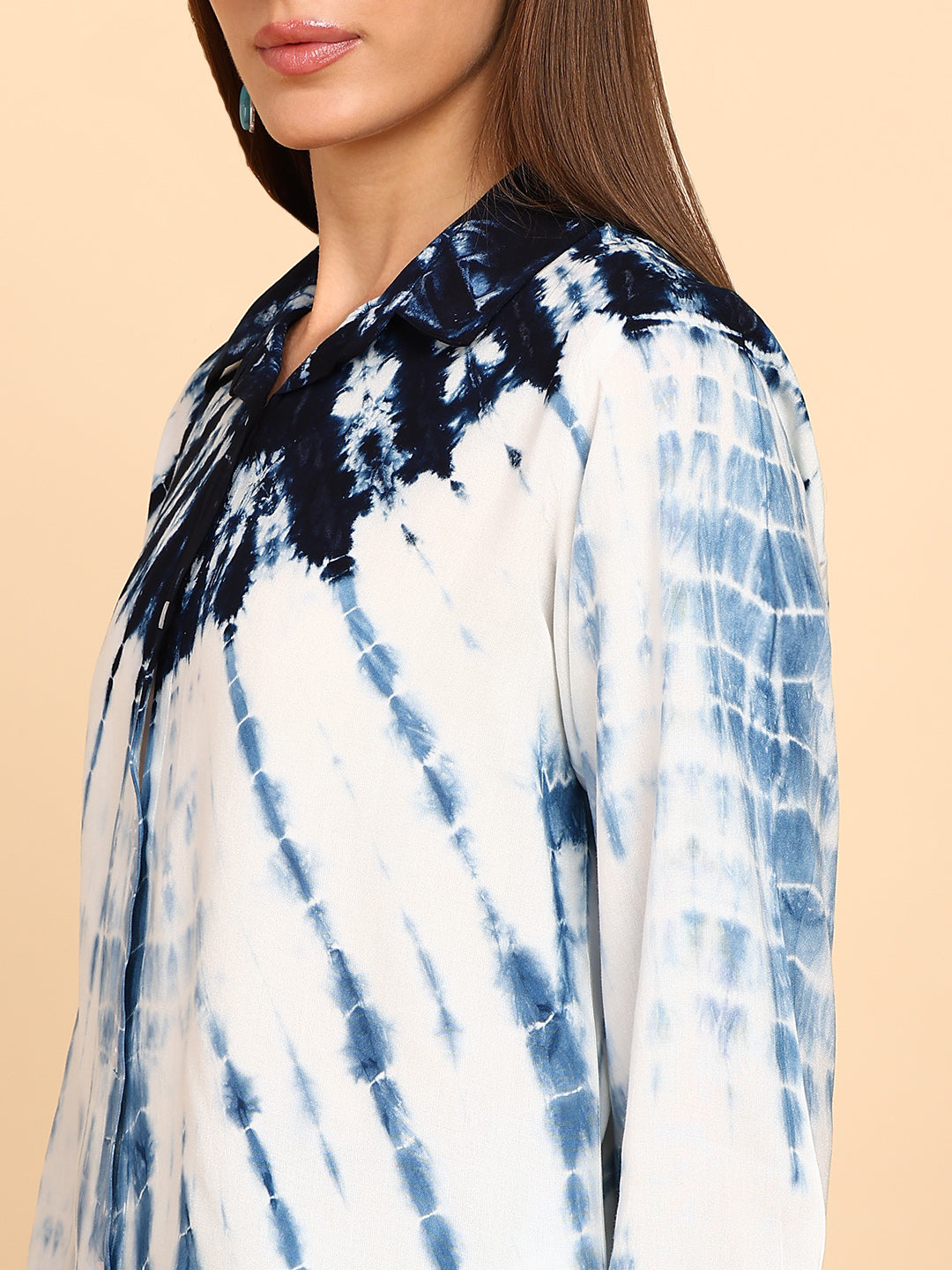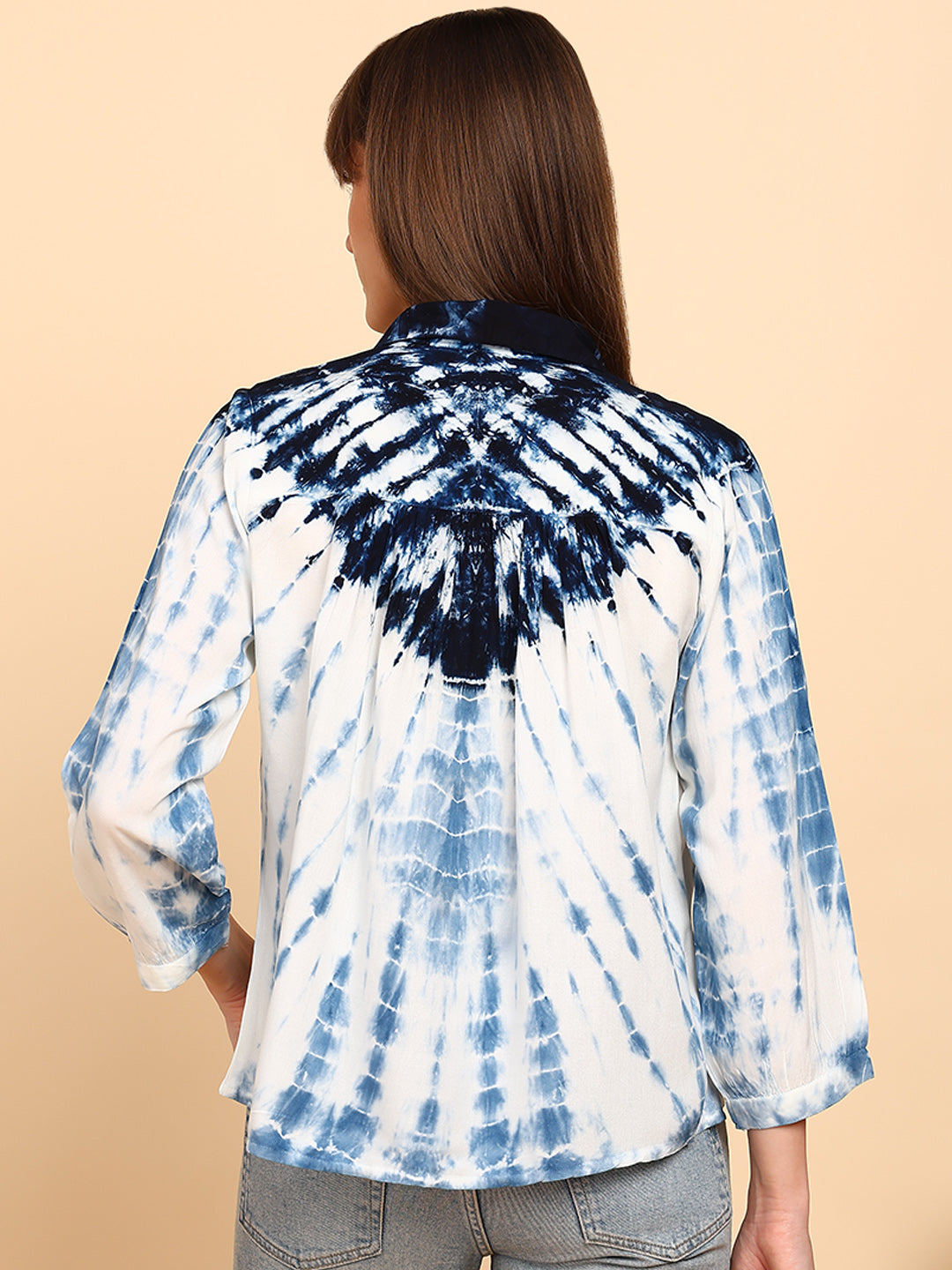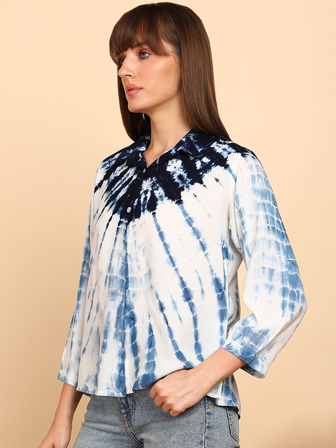 Women Rayon Staple Tie & Dye Spread Collar Regular Fit Shirt (W1772)