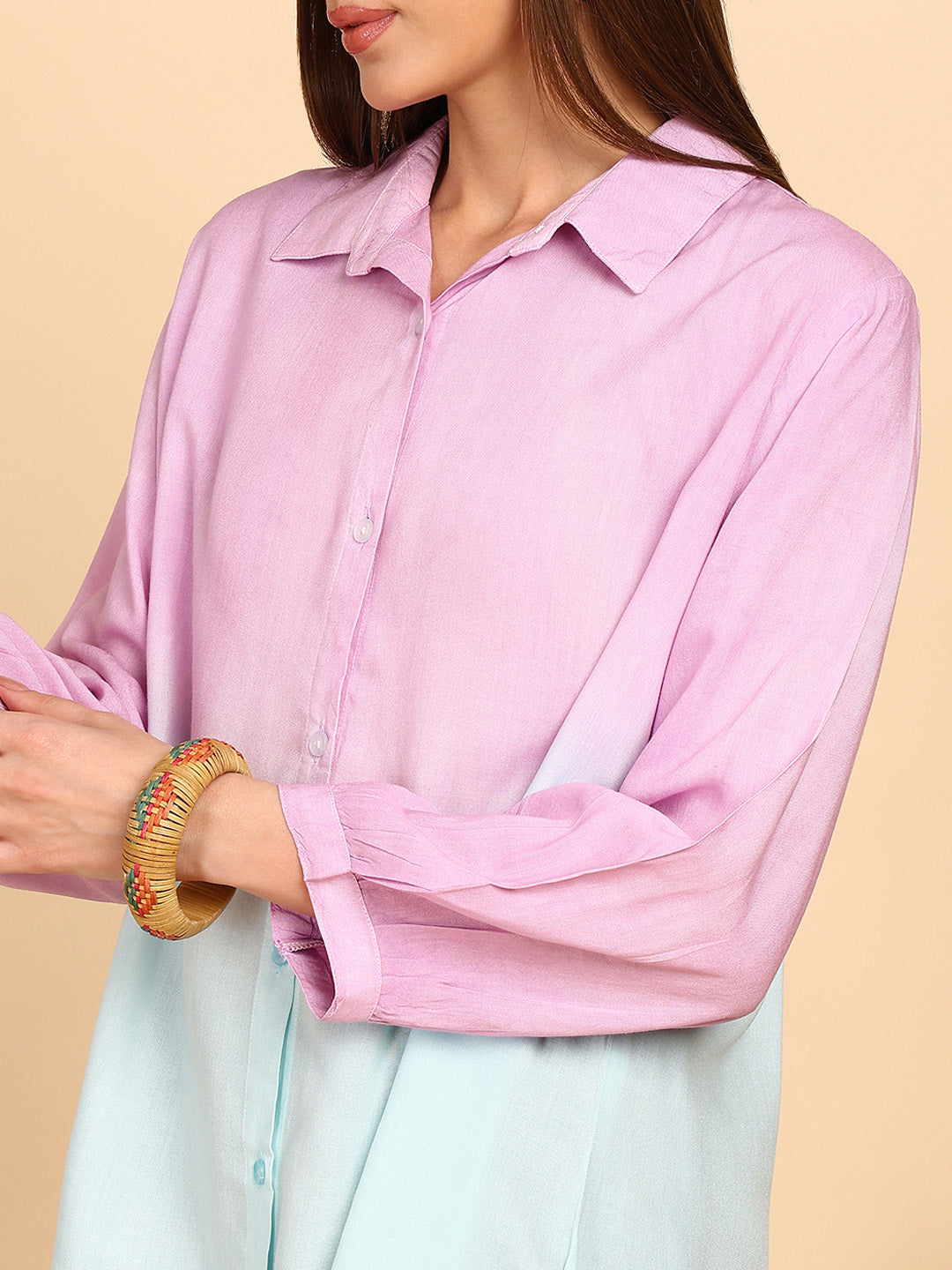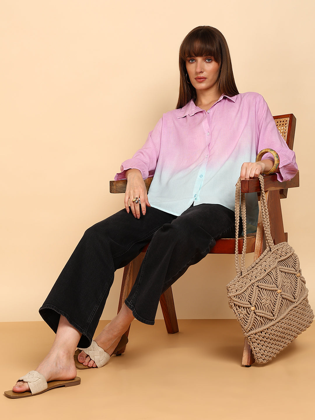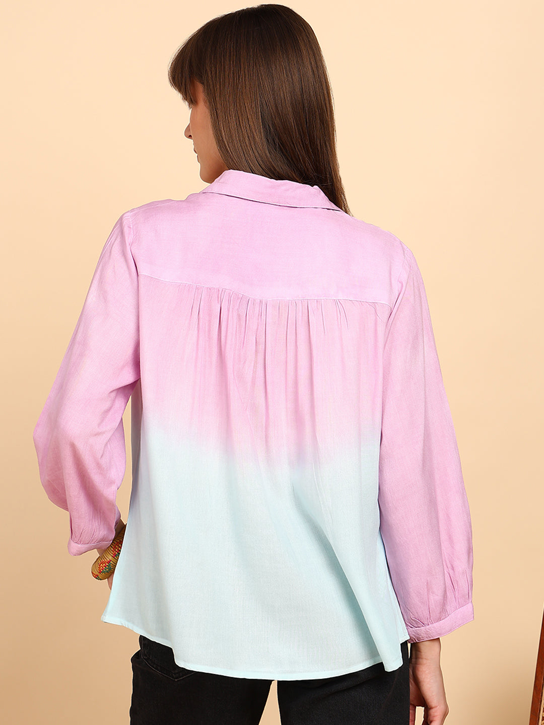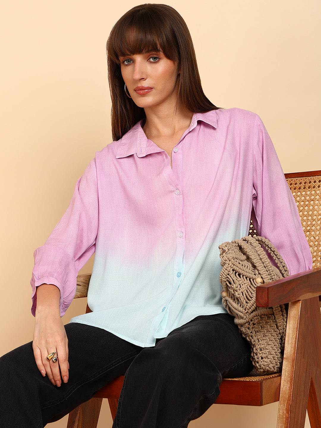 Women Rayon Staple Tie & Dye Spread Collar Regular Fit Shirt (W1773)